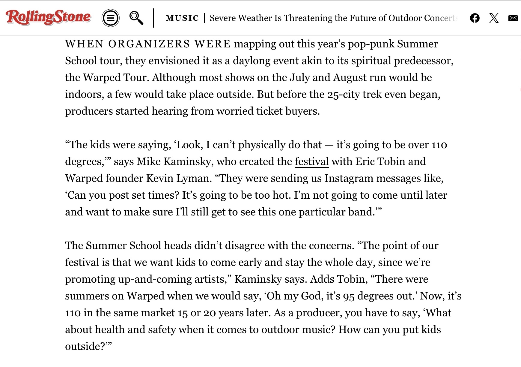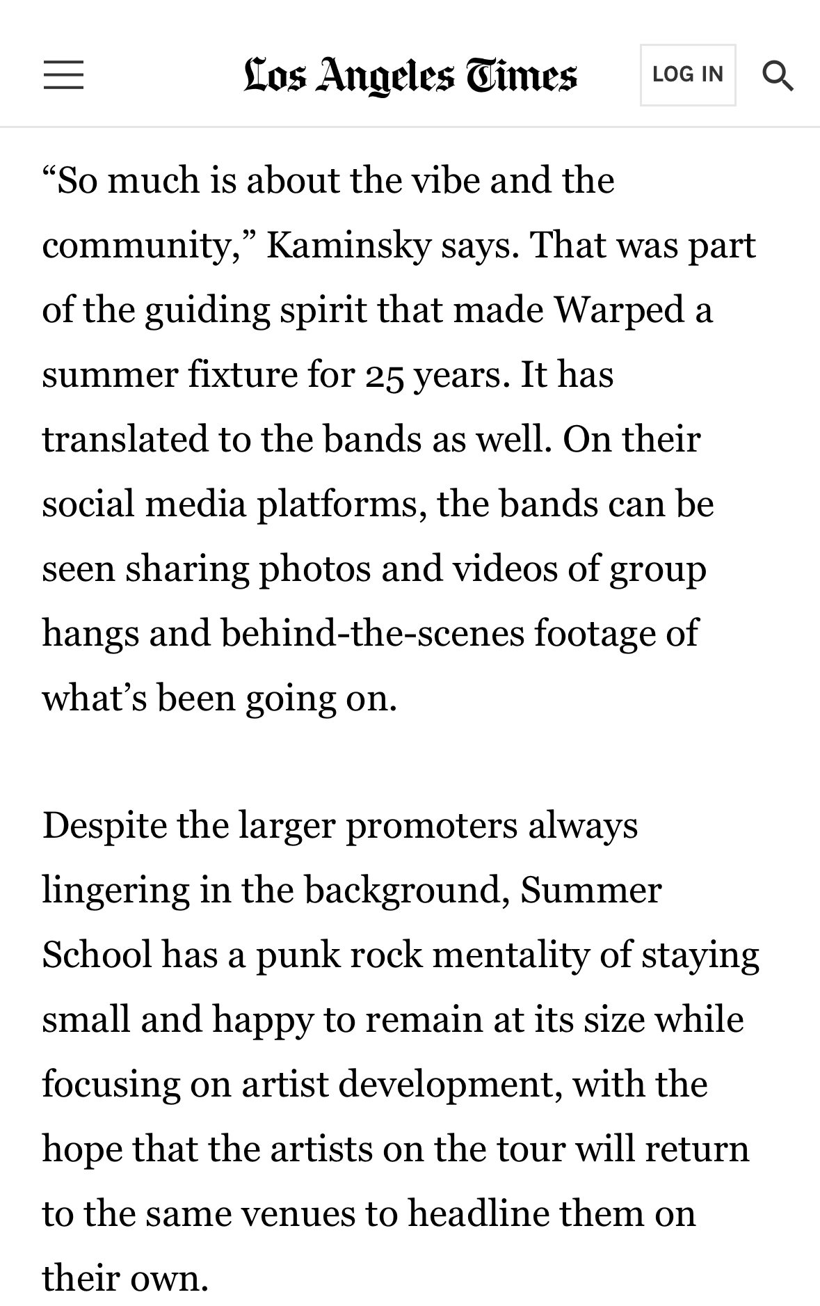 The team behind the Summer School Tour was featured in both LA Times and Rolling Stone for their inaugural 2024 run.